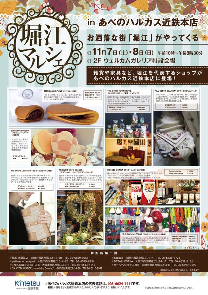 参加店:黒船 南堀江店・patisserie bouquet・The ONOE FURNITURE・”LA CITTA BIANCA”/ma chére cosette?・baobab・DETAIL OSAKA・サイクルショップ203